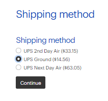 - If your order is being shipped to a residential address, please select "Yes," where you are asked if your shipping address is residential. If it is not, simply click "Continue." Please note that when you select "Yes" you are accepting a $4 charge, as UPS charges Residential Surcharges for residential shipments.